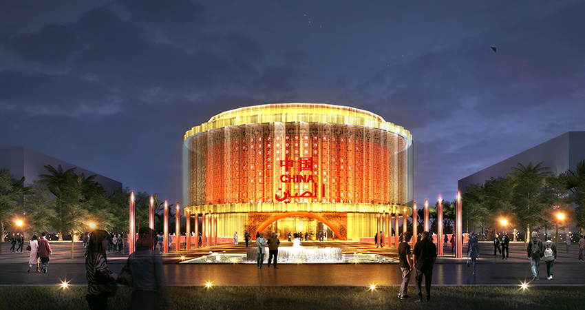 2020年迪拜世博會(huì)中國(guó)館,建筑名為“華夏之光”,以“構(gòu)建人類命運(yùn)共同體——?jiǎng)?chuàng)新和機(jī)遇”為主題。