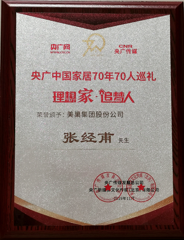 美巢集團(tuán)董事長張經(jīng)甫獲央廣中國家居70年70人“理想家·追夢人”稱號