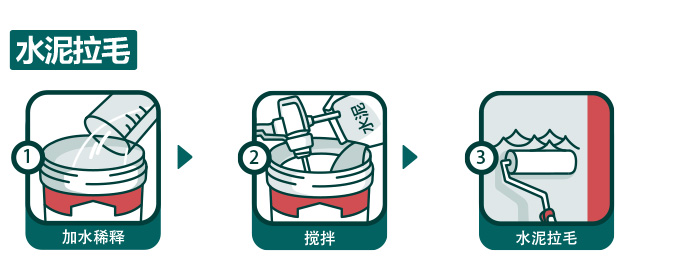 A、水泥拉毛:將本品加水稀釋后的混合液體與水泥(建議使用符合GB175要求的強(qiáng)度等級(jí)不低于42.5級(jí)的普通硅酸鹽水泥)按1:2攪拌成膠漿狀,涂抹于基層表面,待硬化后即可開始后續(xù)施工。不同基層加水稀釋比 例如表所示。